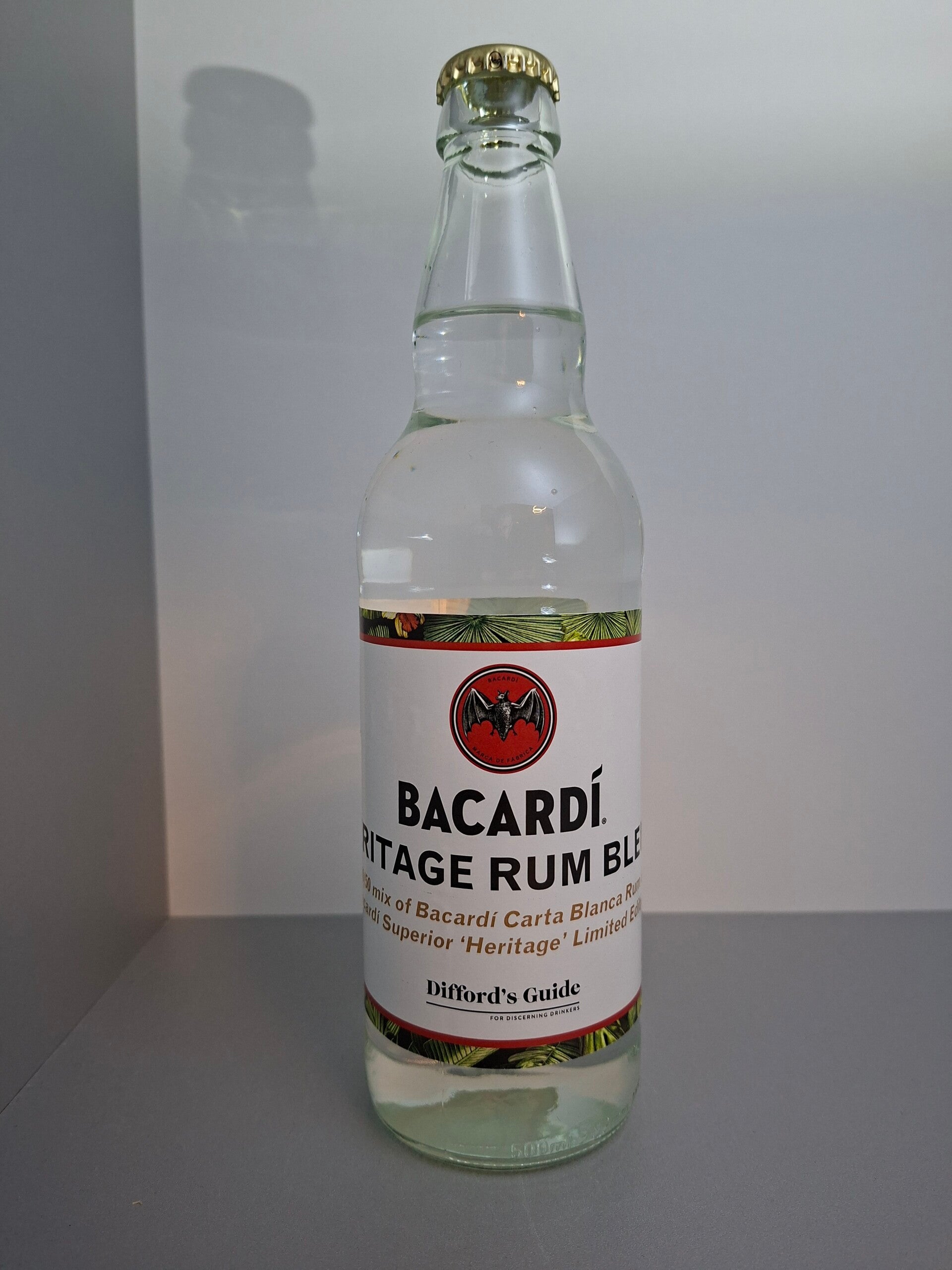 Difford's Guide. Heritage Rum Blend. 50% Bacardi Carta Blanca & 50% Bacardi Superior 'Haritage' Limited Edition